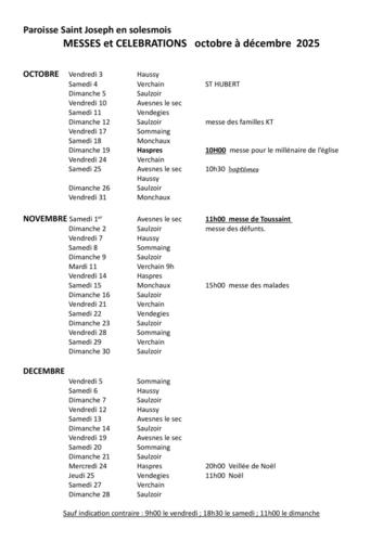 MESSES et CELEBRATIONS octobre à décembre 2025